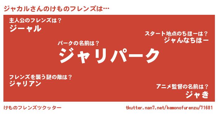 | 意味不明あだ名 | 『自称ジャカル』『永久保存ジャカル』 |