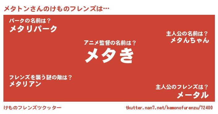 | ヘコむあだ名 | 『メタを』『メタトン(笑)』 |