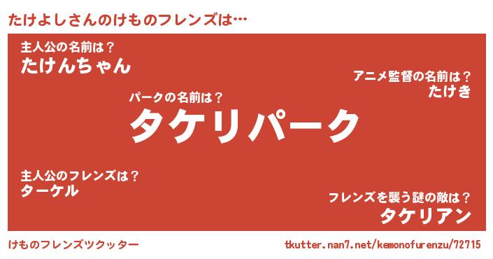 | 意味不明あだ名 | 『自称たけよし』『なめこ科たけよし属』 |