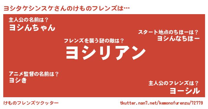 | ヘコむあだ名 | 『ヨシふぇ~』『ヨシタケシンスケ(笑)』 |