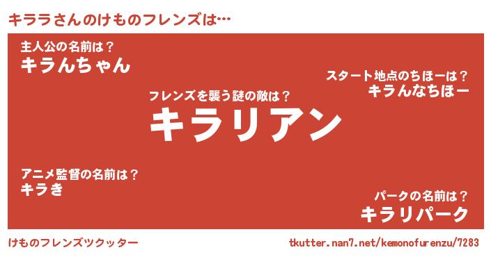 | 男性向けラノベタイトル風あだ名 | 『この素晴らしい世界にキララを!』 |