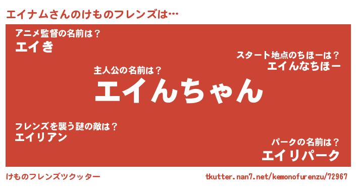 | ヒーロー風カッコイイあだ名 | 『仮面エイダー』『スーパーエイナム』 |