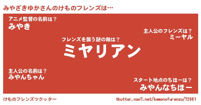 | 肩書あだ名 | 『みやざきゆか艦長』『みやざきゆか先生』 |