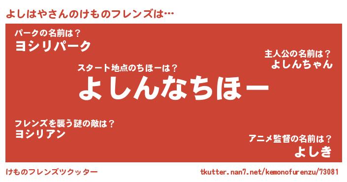 | 男性向けラノベタイトル風あだ名 | 『この素晴らしい世界によしはやを!』 |