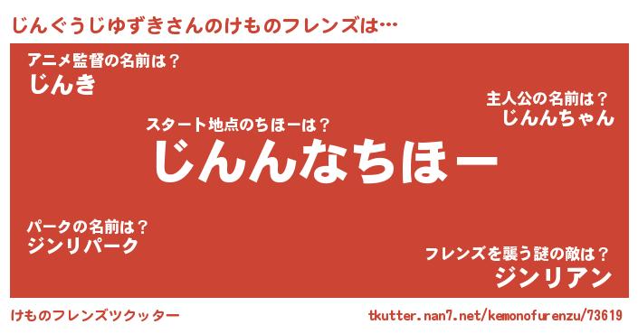 | 男性向けラノベタイトル風あだ名 | 『この素晴らしい世界にじんぐうじゆずきを!』 |