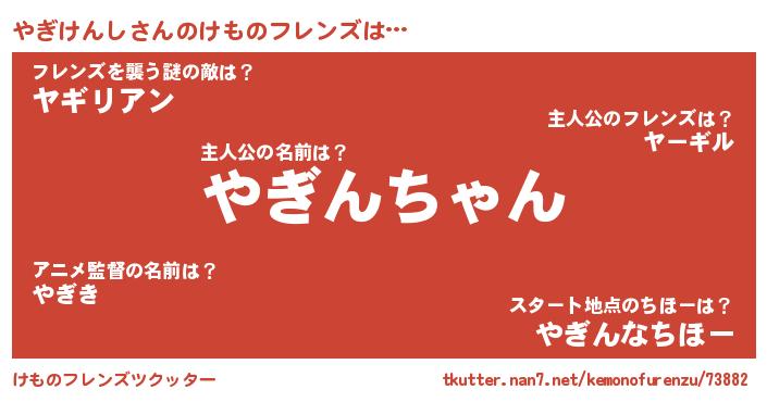 | 2回繰り返すあだ名 | 『ちゃぽちゃぽ』『やぎやぎ』 |