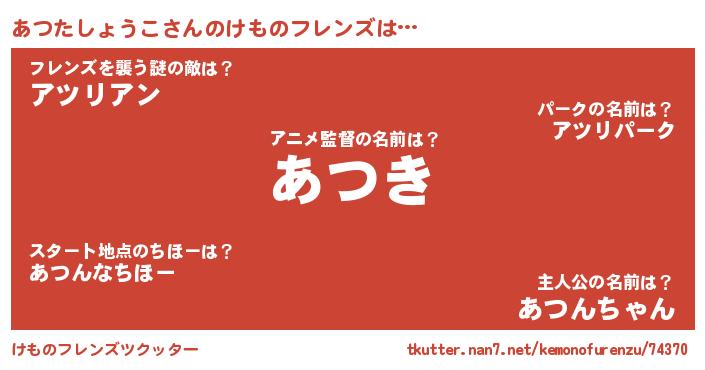 | 意味不明あだ名 | 『とにかく怪しいあつたしょうこ』 |