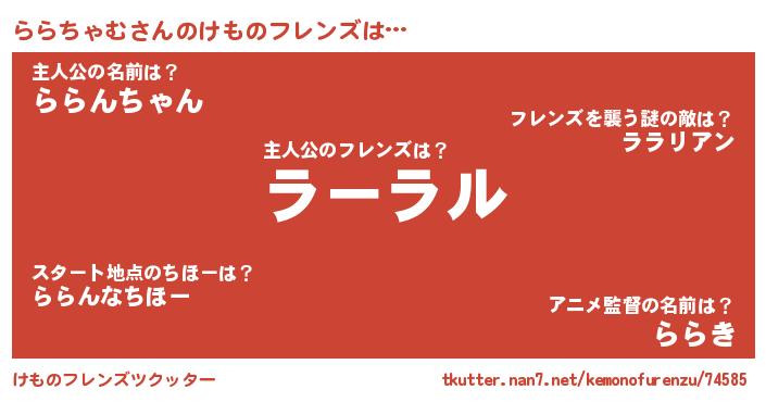 | 意味不明あだ名 | 『つくし科ららちゃむ属』 |