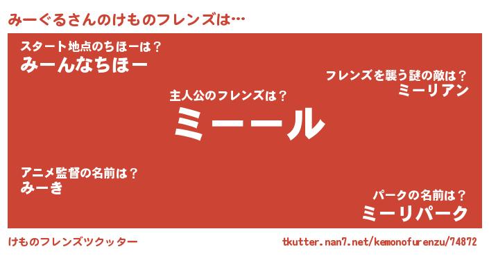 | 意味不明あだ名 | 『永久保存みーぐる』『自称みーぐる』 |