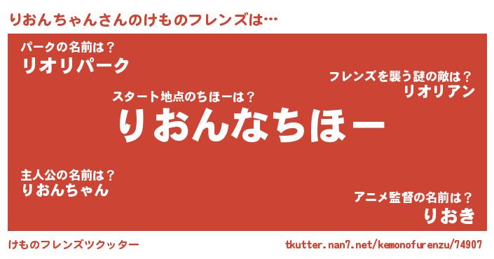 | 男性向けラノベタイトル風あだ名 | 『この素晴らしい世界にりおんちゃんを!』 |