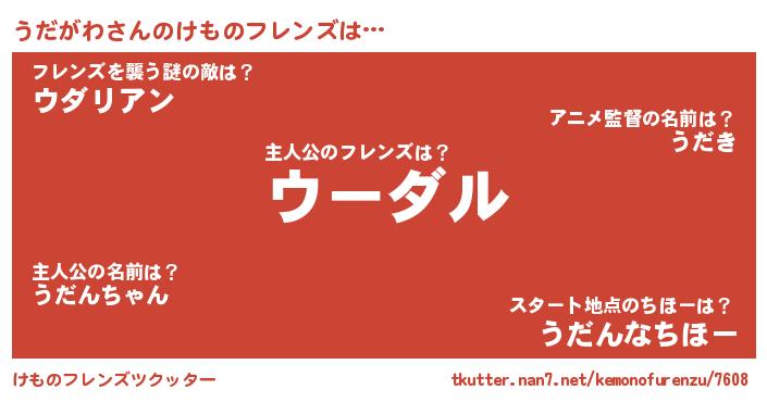 | 肩書あだ名 | 『うだがわ先生』『うだがわ教授』 |