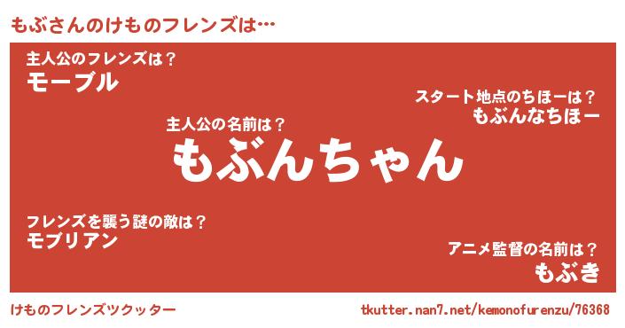 | ツイッター | もぶさんのツイッターID『namakemono_kun』 |
