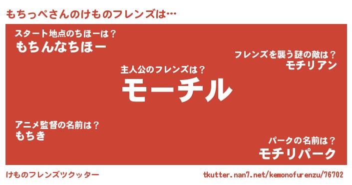 | 男性向けラノベタイトル風あだ名 | 『もちっぺという概念が存在しない退屈な世界 』 |