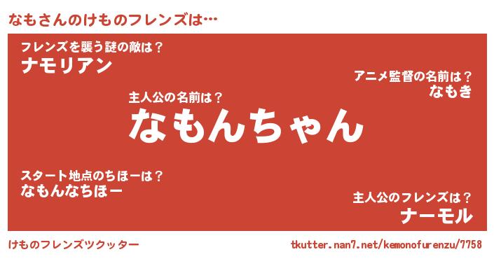 | 料理風あだ名 | 『なもごはん』『栗となものマフィン』 |