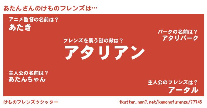 | ヒーロー風カッコイイあだ名 | 『慈愛の使者あたん』『黄金騎士アタ』 |