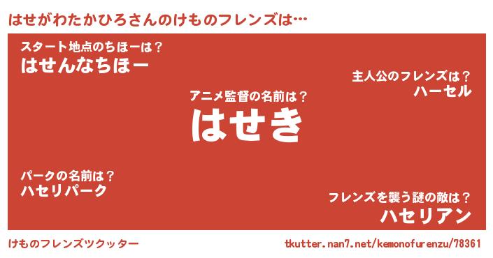 | 意味不明あだ名 | 『とにかく怪しいはせがわたかひろ』 |