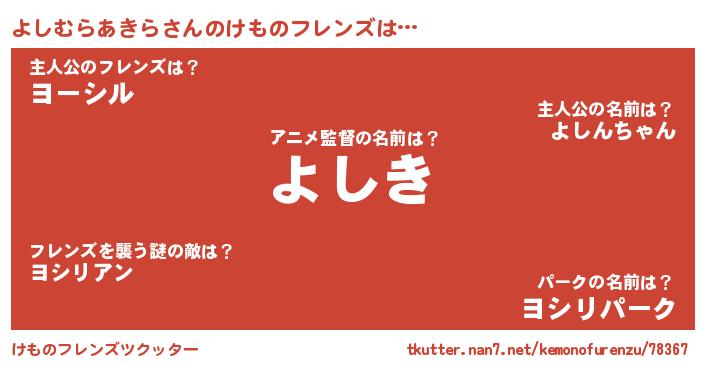 | ヘコむあだ名 | 『よしぷりん』『よしむらあきら(小並感)』 |