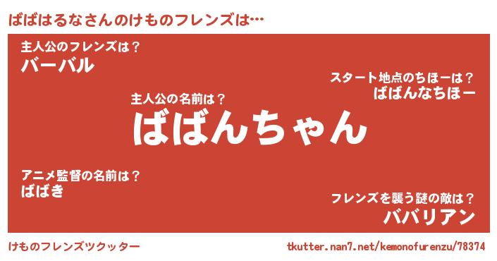 | ポケモン風あだ名 | 『ババチュウ』『バーバイ』 |