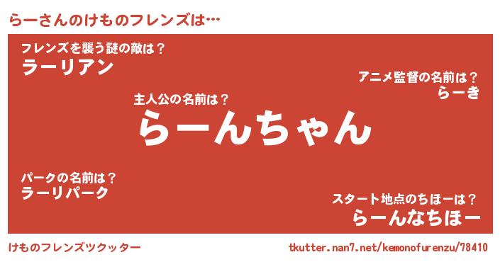 | 2回繰り返すあだ名 | 『らーらー』『わなわな』『ぶつぶつ』 |