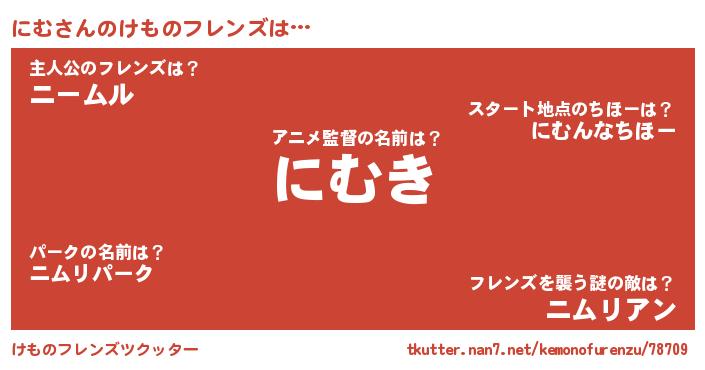 | 料理風あだ名 | 『にむの豆乳スープ』『にむのトマト煮』 |