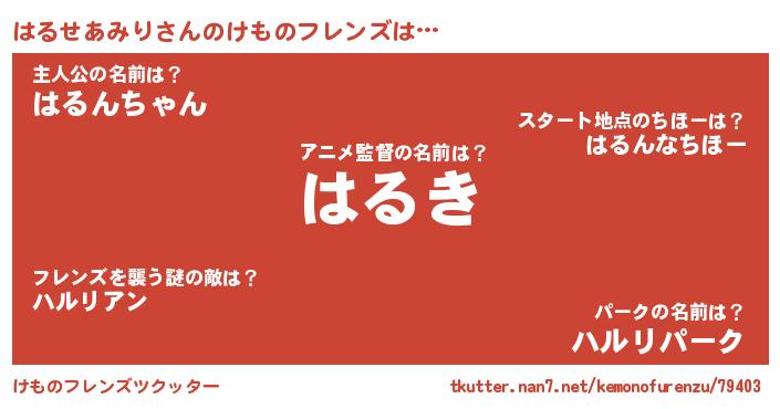 | ポケモン風あだ名 | 『ヒハルセアミリ』『ハルチュウ』 |