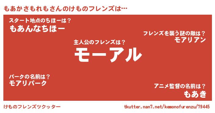| 男性向けラノベタイトル風あだ名 | 『もあかさもれもという概念が存在しない退屈な世界 』 |