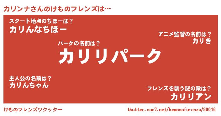 | 意味不明あだ名 | 『自称カリンナ』『カリンナフォーエバー』 |