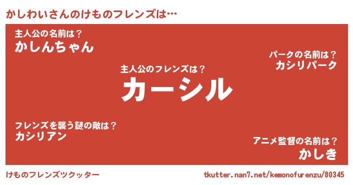 | ヘコむあだ名 | 『かしわい(爆)』『かしもー』 |