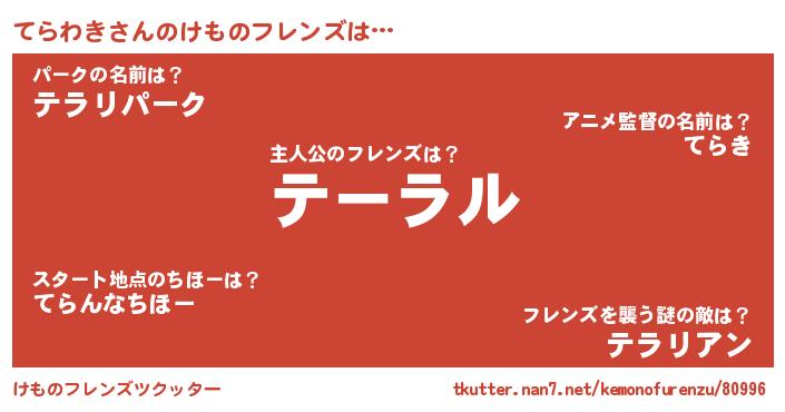 | 意味不明あだ名 | 『永久保存てらわき』『自称てらわき』 |