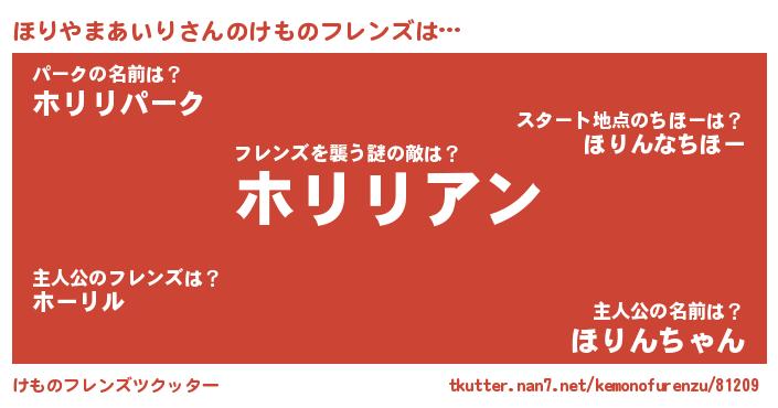 | 2回繰り返すあだ名 | 『べりべり』『もろもろ』『ほりほり』 |