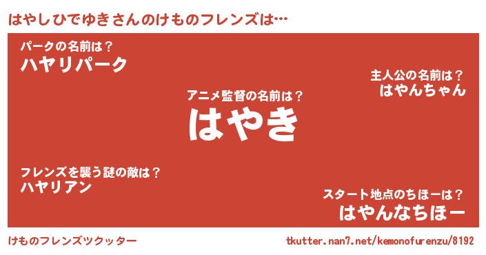 | ピコ太郎風あだ名 | 『ハヤ八郎』『ピハ次郎』『ハコ一郎』 |