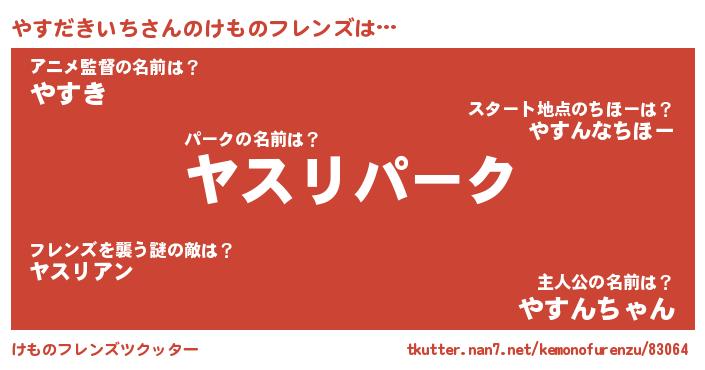 | 肩書あだ名 | 『やすだきいち大佐』『やすだきいち総統』 |