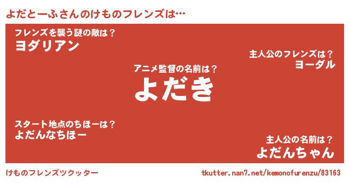 | ヒーロー風カッコイイあだ名 | 『魔戒騎士ヨダ』『仮面ヨダダー』 |