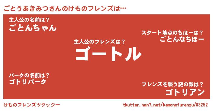 | ヒーロー風カッコイイあだ名 | 『仮面ゴトダー』『ネオゴトウアキミツ』 |