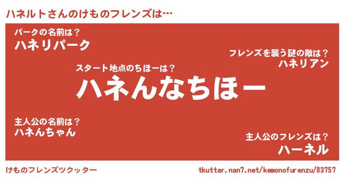 | 伝説のあだ名 | 『秘められし忍者ハネルト』 |