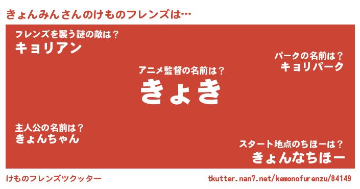 | 男性向けラノベタイトル風あだ名 | 『この素晴らしい世界にきょんみんを!』 |