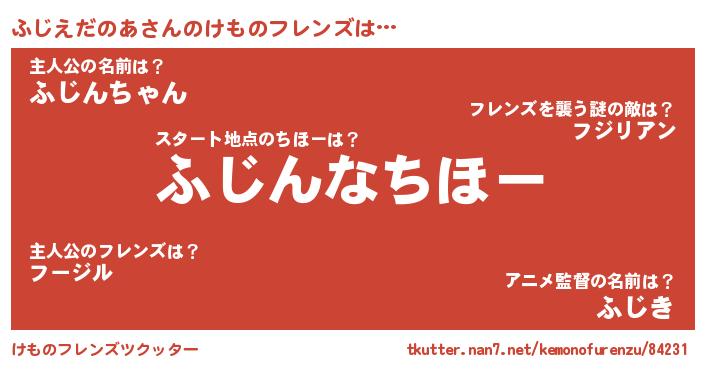 | 2回繰り返すあだ名 | 『ふふじじ』『ふじふじ』『うずうず』 |