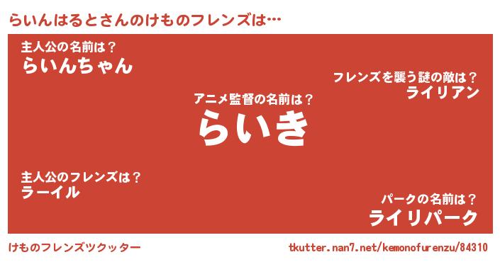 | ピコ太郎風あだ名 | 『ライ八郎』『ラコ十郎』『ララ太郎』 |