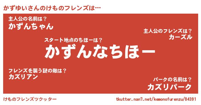 | ヒーロー風カッコイイあだ名 | 『仮面カズダー』『ウルトラかずゆいマン』 |