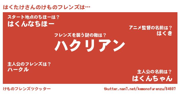 | 男性向けラノベタイトル風あだ名 | 『はくたけに滅ぼされるだけの簡単なお仕事です』 |
