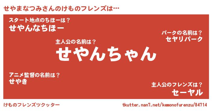 | ヒーロー風カッコイイあだ名 | 『スーパーセヤマナツミ』『天弓騎士セヤ』 |