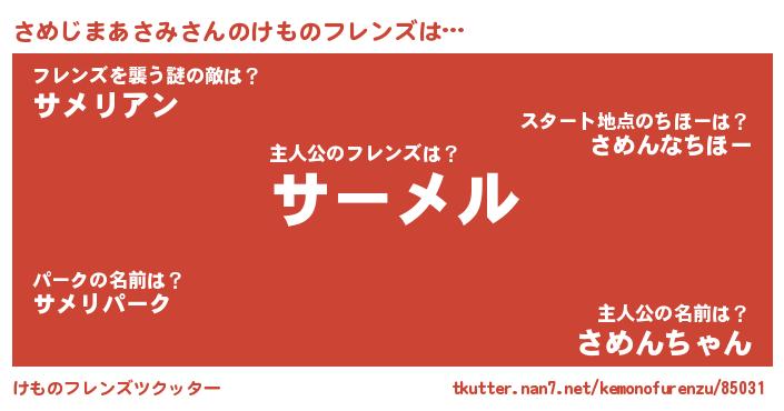 | 意味不明あだ名 | 『永久保存さめじまあさみ』 |