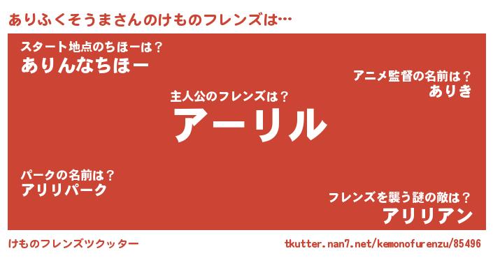 | 男性向けラノベタイトル風あだ名 | 『ありふくそうまに滅ぼされるだけの簡単なお仕事です』 |