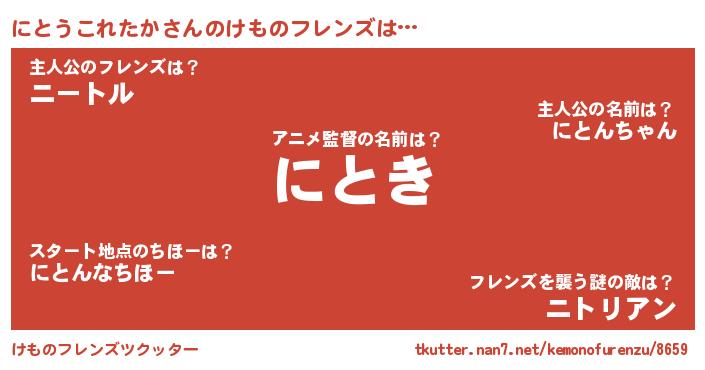 | 男性向けラノベタイトル風あだ名 | 『にとうこれたかの嫁は女の子じゃないと思った?』 |
