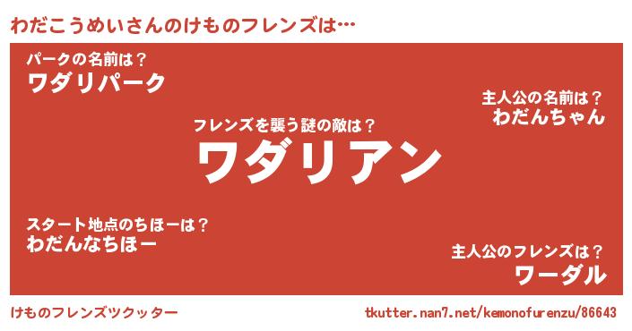 | 男性向けラノベタイトル風あだ名 | 『おまえをオタクにしてやるから、俺をわだこうめいにしてくれ! 』 |