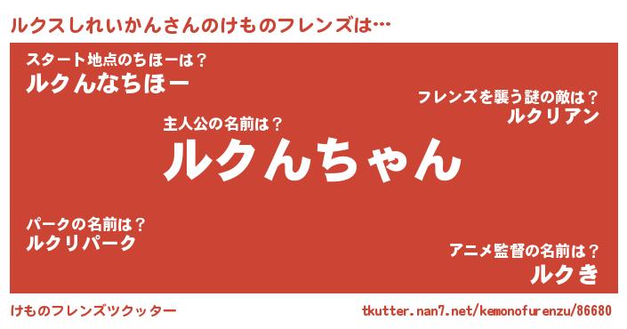| 2回繰り返すあだ名 | 『ルクルク』『わいわい』『ルルクク』 |