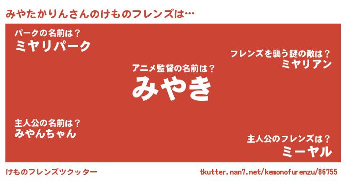 | 意味不明あだ名 | 『とにかく怪しいみやたかりん』 |