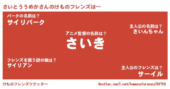 | 意味不明あだ名 | 『とにかく怪しいさいとううめか』 |