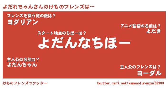 | 2回繰り返すあだ名 | 『よよだだ』『ぼんぼん』『わんわん』 |