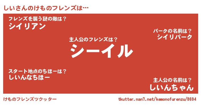 | 料理風あだ名 | 『満腹しいマフィン』『しいのトマト煮』 |